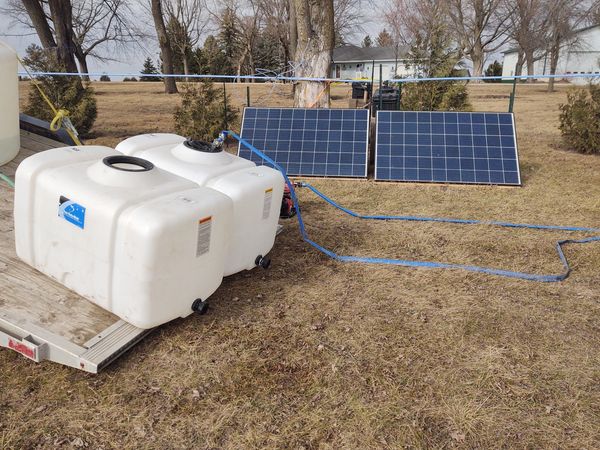 2024 Field study used 44 SapMaster on 5/16 inch tubbing and 360 foot of 3/4 inch mainline with 40 saddles powered by a 12 volt diagram pump.